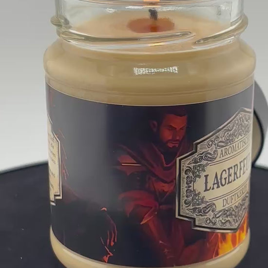 Rauchig. Warm. Abenteuerlich. Mit unserer Duftkerze Lagerfeuer holst du dir das Gefühl eines knisternden Feuers direkt an den Spieltisch – perfekt, wenn eure Party gerade durchs Wildnislager zieht, im Wald rastet oder am Ende des Dungeons kurz durchatmet.